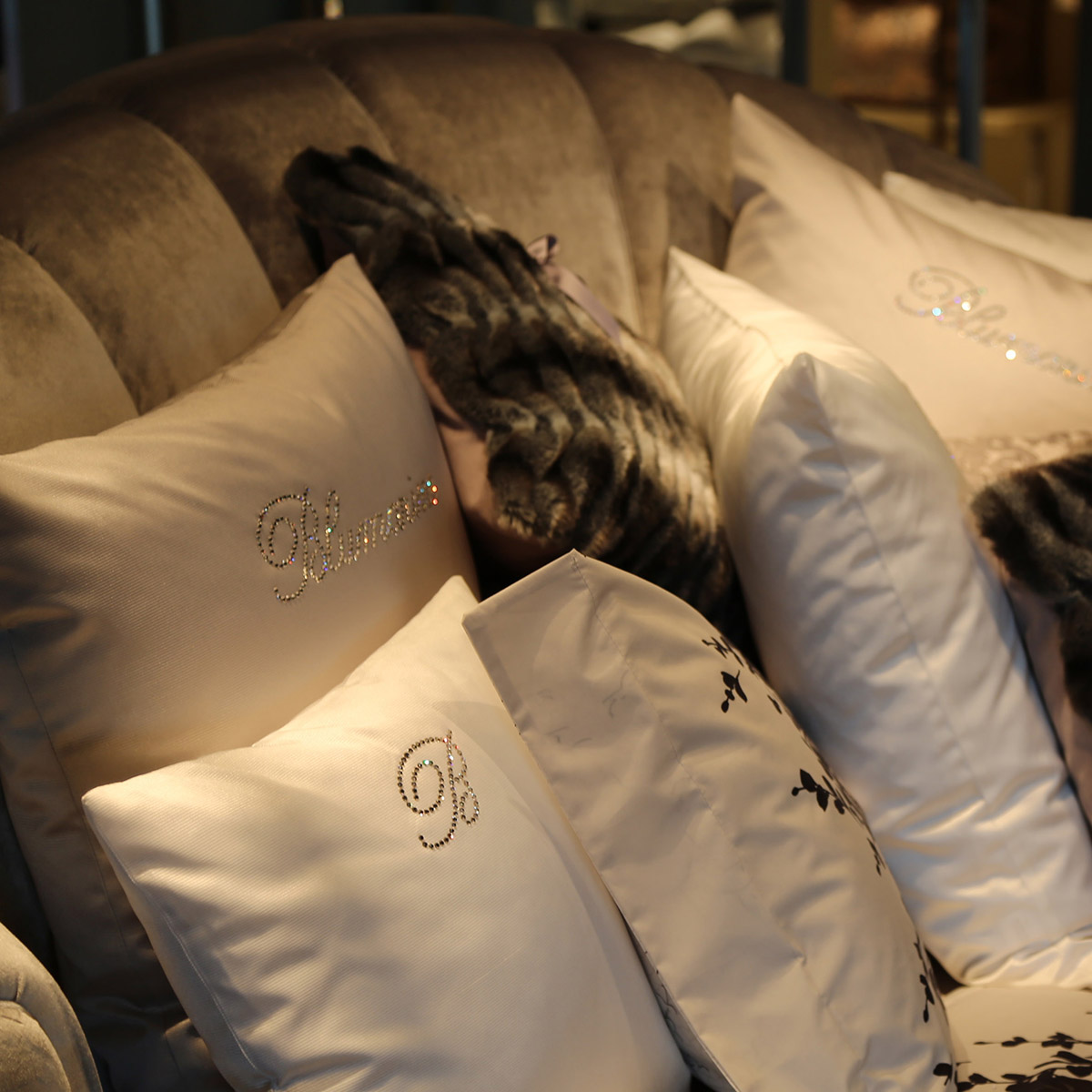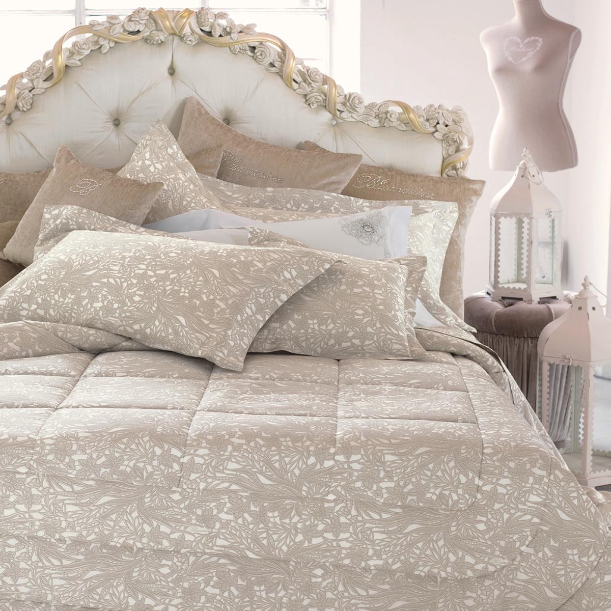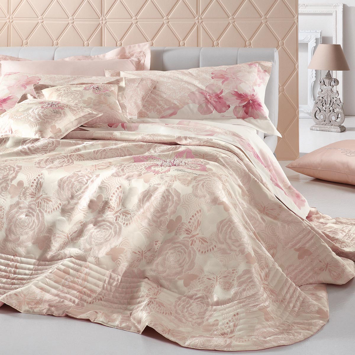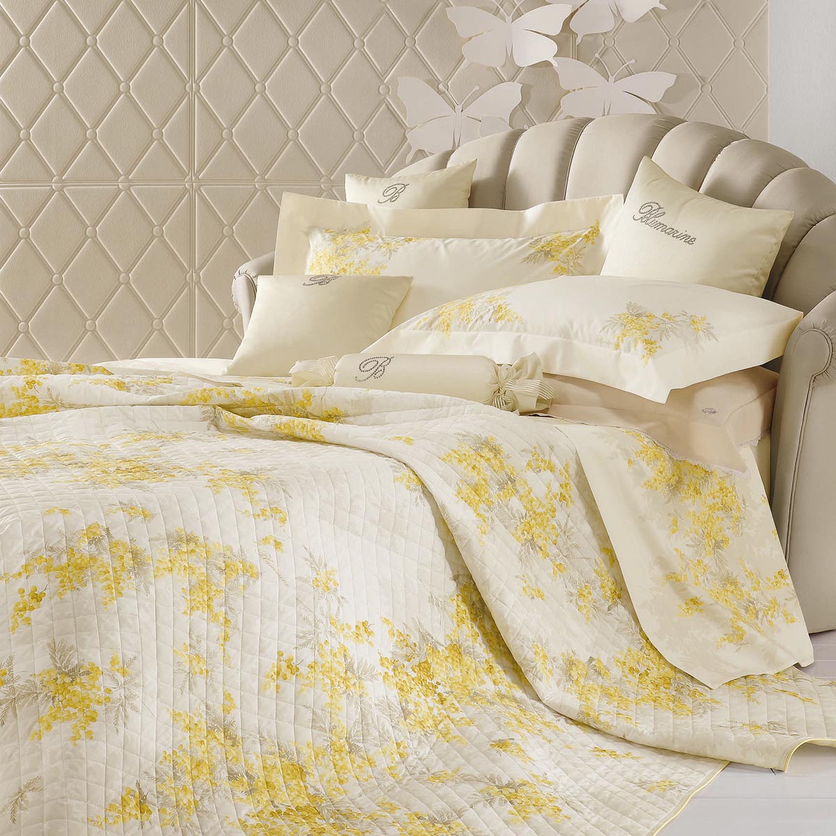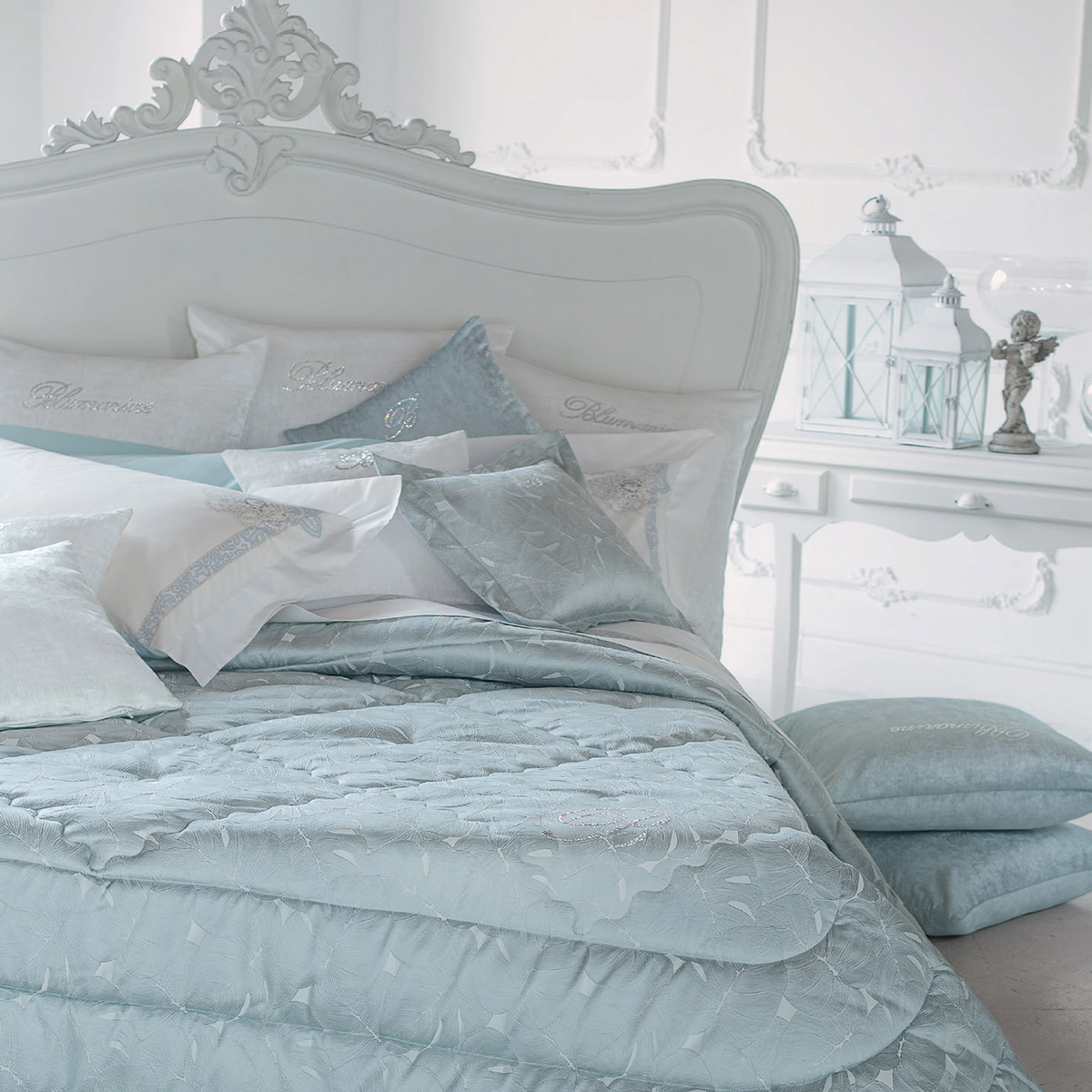 Böyük təcrübəyə sahib Blumarine Home Collection, “Made in Italy” mükəmməlliyinə və kutyur üslubuna malikdir. Təqdim olunan qiymətli kolleksiyalardakı hər bir məhsul, həmin kolleksiyanın əhval-ruhiyyəsini əks etdirərək, çəhrayı, dəniz rəngi, tısbağa-göyərçin və tünd-qırmızı rənglərdə, trompe-l’oeil krujevasını xatırladan büzməli çapla yataq örtükləri dəsti, yastıq və yorğan üzləri, strazlarla bəzədilmiş divan yastıqları təklif edir. Romantik üslubda əsrarəngiz bəzəklərlə və çəhrayı tonlarda qızıl güllər, bəyaz fonda qırmızı rənglə dəniz rənginin ahəngi, jakar materialından olan yataq örtüyü və üzərində mirvariylə bəzədilmiş strazlar – lüks kolleksiyalarına daxildir.