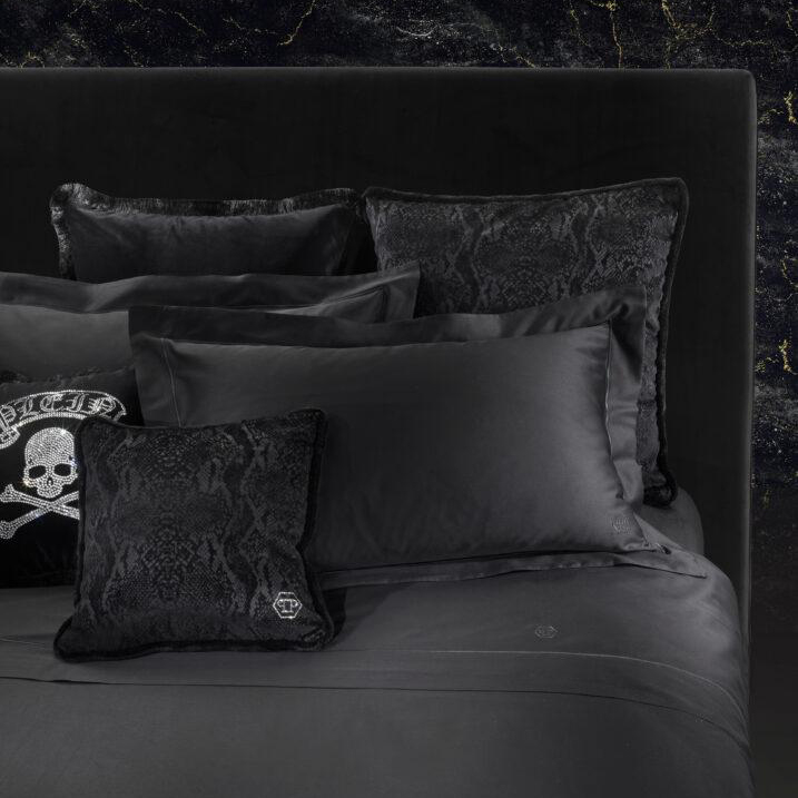 “A fantasy world of textiles, infused with flamboyant luxury and bold design. The Philipp Plein bedding collection is not a standard sleep experience — it is a statement. Presented in breathtaking colors, sumptuous fabrics and daring accents, each piece embodies the brand’s DNA: maximalist opulence, rebellious charisma and unapologetic sensuality.